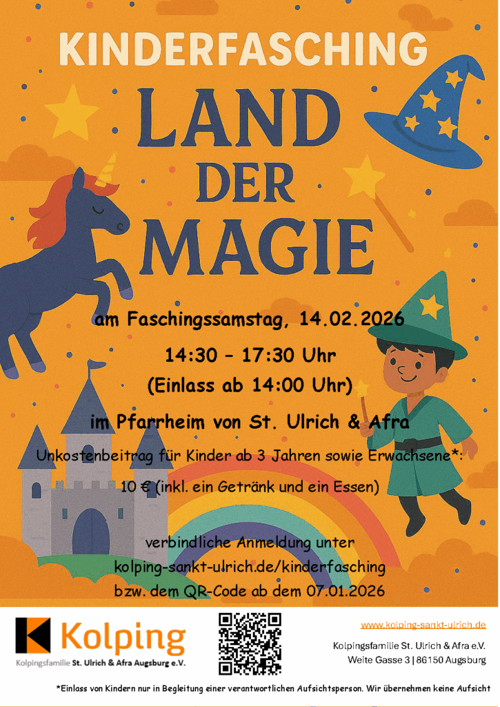 Der Kinderfasching 2026 findet am 14. Februar um 14:30 Uhr statt.